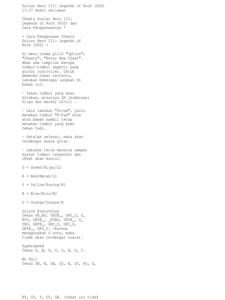 Music Instrument Guitar Hero 3 Cheats Ps2